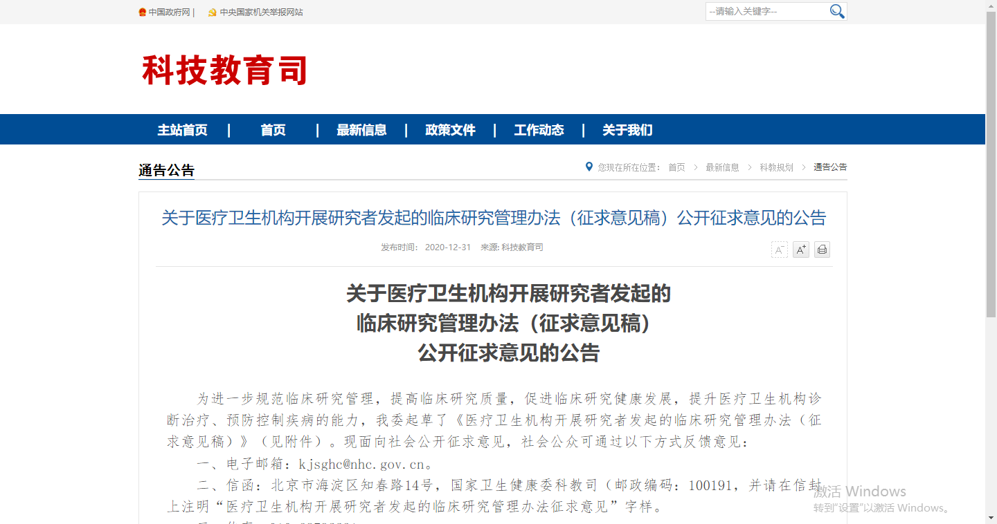 二、信函:北京市海淀區知春路14號,國家衛生健康委科教司(郵政編碼:100191,并請在信封上注明“醫療衛生機構開展研究者發起的臨床研究管理辦法征求意見”字樣。