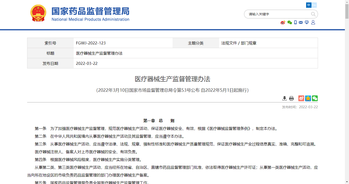 近日,市場監(jiān)管總局發(fā)布了修訂后的《醫(yī)療器械生產(chǎn)監(jiān)督管理辦法》和《醫(yī)療器械經(jīng)營監(jiān)督管理辦法》,自2022年5月1日起施行。重點加強智慧醫(yī)療精細化管理醫(yī)療器械能力。
