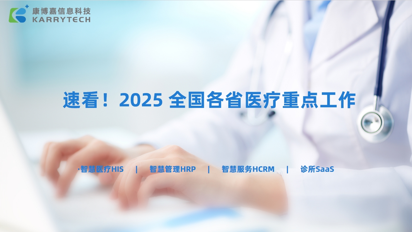 2024年底,2025年全國衛(wèi)生健康工作會議于北京成功召開,為當年全國醫(yī)療衛(wèi)生領域的工作指明了方向。自2025年1月起,各省積極響應,紛紛召開衛(wèi)生健康工作會議,依據(jù)國家總體部署,結(jié)合本省實際情況,進一步細化落實一系列重點工作。從整體趨勢來看,各省醫(yī)療衛(wèi)生工作重點主要聚焦于深化醫(yī)改、提升基層醫(yī)療服務能力以及加強公共衛(wèi)生體系建設這三大關(guān)鍵方面。