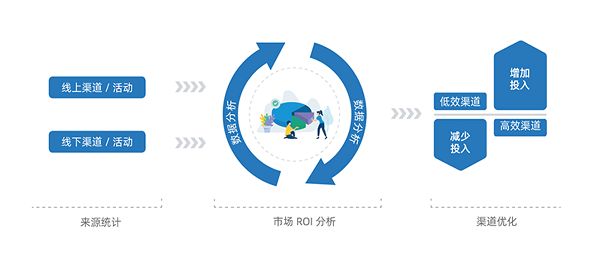 數據集中管控是將線索收集后統一進行用戶分類分級、記錄投入產出的過程。而集中管控的另一個目的也是為了數據可以快速拆分,減少搜索客戶的時間成本、市場活動投入和產出情況,集中和拆解可以快速的發現市場管理背后的真相,分辨客戶需求和投放渠道的對與錯,為下一步科學決策提供支持。