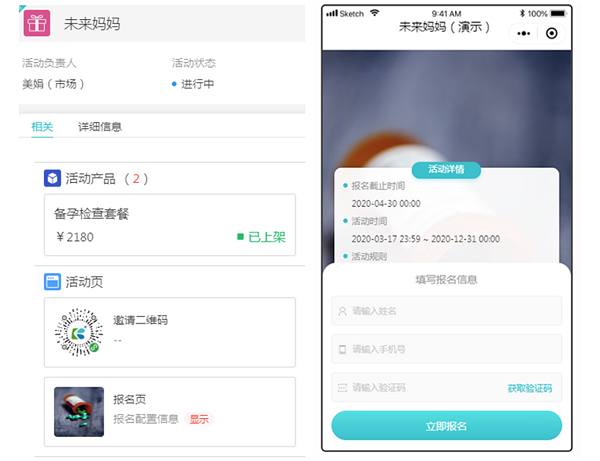 活動場景應用:康博嘉醫院CRM可記錄每場活動情況。活動開始前,醫院員工可以下載邀請頁海報,發送到朋友圈邀請客戶參加活動;客戶可以掃碼打開小程序、H5頁面進行報名。活動結束后,系統可以轉化成線索名單。另一方面,客戶也可以通過活動推送平臺參與促銷活動,記錄促銷的時間和用戶領用后的使用情況。有效分析每一次市場活動的投入產出比,根據與市場活動參與情況和回款情況做統計,實現可視化數據管理。