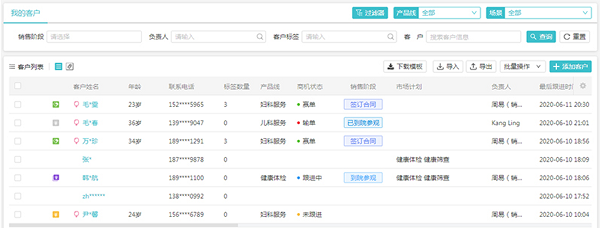 康博嘉醫(yī)院CRM還可以全面展示銷(xiāo)售業(yè)績(jī),包括銷(xiāo)售額、平均客單價(jià)、贏單、輸單等信息。其中,可以看到具體的贏單情況,客戶(hù)名稱(chēng)、年齡、電話(huà)等基本信息,來(lái)源是哪里,商機(jī)、產(chǎn)品線(xiàn)是什么,目前處于哪個(gè)銷(xiāo)售階段,負(fù)責(zé)人是誰(shuí),商機(jī)金額、預(yù)計(jì)成交日期等信息。同時(shí)還能提供銷(xiāo)售簡(jiǎn)報(bào),每位銷(xiāo)售可以看到自己客戶(hù)的跟進(jìn)情況和客戶(hù)標(biāo)簽等,比如可以查看所有客戶(hù)所處的銷(xiāo)售階段,是電話(huà)溝通、預(yù)約到院還是最后協(xié)商、簽訂合同等。重要的是可以查看客戶(hù)標(biāo)簽,比如溝通了解到客戶(hù)對(duì)蛋類(lèi)、牛奶、海鮮或花粉過(guò)敏,客戶(hù)有糖尿病、高血壓、冠心病慢性病等,都可以及時(shí)記錄在系統(tǒng)中,為診療提供更完善的患者信息,提升醫(yī)療質(zhì)量。此外,銷(xiāo)售主管還可以看到新增商機(jī)、未完成商機(jī)、未分配商機(jī)、跟進(jìn)中商機(jī)及未跟進(jìn)商機(jī)等情況和銷(xiāo)售業(yè)績(jī)排行榜,及時(shí)分配商機(jī),調(diào)整管理策略。
