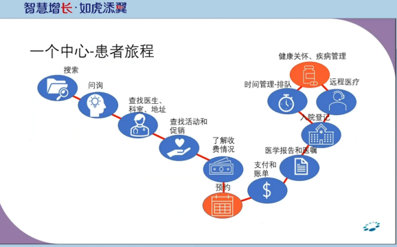 第一階段——觸達(dá),患者可以通過多種渠道觸達(dá)醫(yī)院;第二階段——激勵,指的是一種良好的醫(yī)患互動,患者能在有需求時(shí)主動與院方對話,并得到及時(shí)響應(yīng);而第三階段的境界,則是在患者康復(fù)后,院方仍需對其保持關(guān)注,用更好的理念和技術(shù),照護(hù)他的終身健康,也就是賦能。