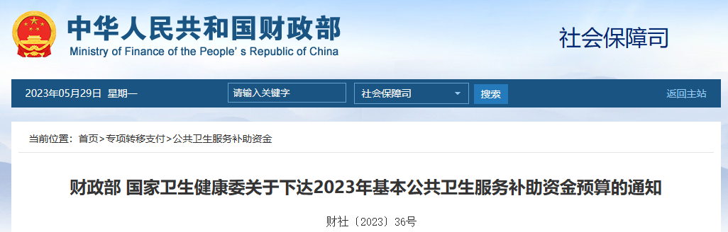 最近,財(cái)政部和國(guó)家衛(wèi)健委發(fā)布《關(guān)于下達(dá)2023年基本公共衛(wèi)生服務(wù)補(bǔ)助資金預(yù)算的通知》。