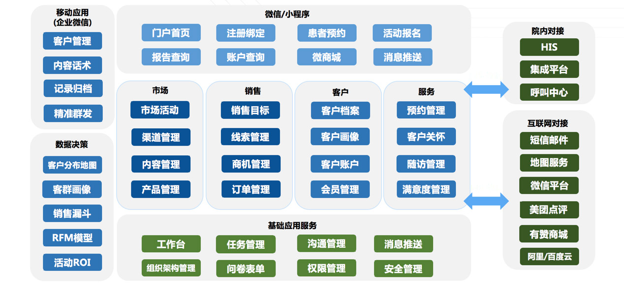 實際上,磨刀不誤砍柴工,醫院管理層如能利用現代化的管理手法,重視并磨好信息化這把刀,大部分傳統管理模式中的營銷痛點,比如分散的渠道管理、不規范的客戶跟進等問題,都可以迎刃而解。這把營銷利刃即為CRM,即客戶關系管理系統。盡管CRM在企業中并非新工具,但醫院CRM的使用還未普及。實際上,包括新世紀醫療、費森尤斯集團在內的頂尖私立醫療機構都在用HCRM(醫院客戶關系管理系統),可以想見,順應以客戶為中心的醫療機構運營趨勢,HCRM將會成為未來醫療機構的必備工具之一,提前用好HCRM,醫療機構勢必能在信息化的浪潮中彎道超車。
