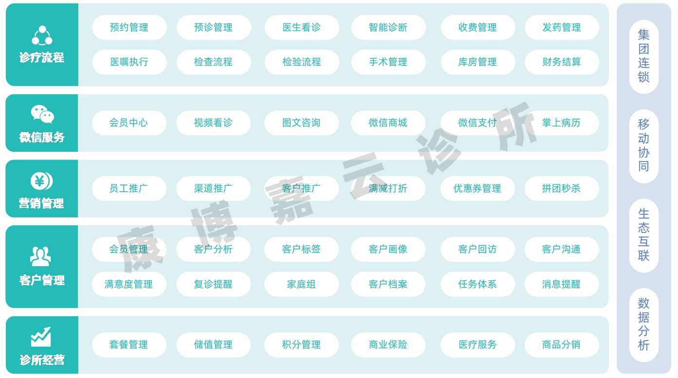在服務(wù)質(zhì)量提升上,云診所客戶管理模塊能詳細記錄患者的基本信息、病歷資料、就診歷史等,醫(yī)生在接診時可快速查閱,全面了解患者情況,從而提供更精準(zhǔn)、個性化的醫(yī)療服務(wù)。并且,借助微信服務(wù)版塊,診所可與患者建立便捷的溝通渠道,實現(xiàn)預(yù)約掛號、報告查詢、健康宣教等功能的線上化,方便患者就醫(yī),提升患者就醫(yī)體驗。此外,我們的統(tǒng)計分析功能可對醫(yī)療數(shù)據(jù)進行深度挖掘,為診所總結(jié)醫(yī)療服務(wù)經(jīng)驗、改進服務(wù)流程、提升醫(yī)療質(zhì)量提供有力依據(jù) 。