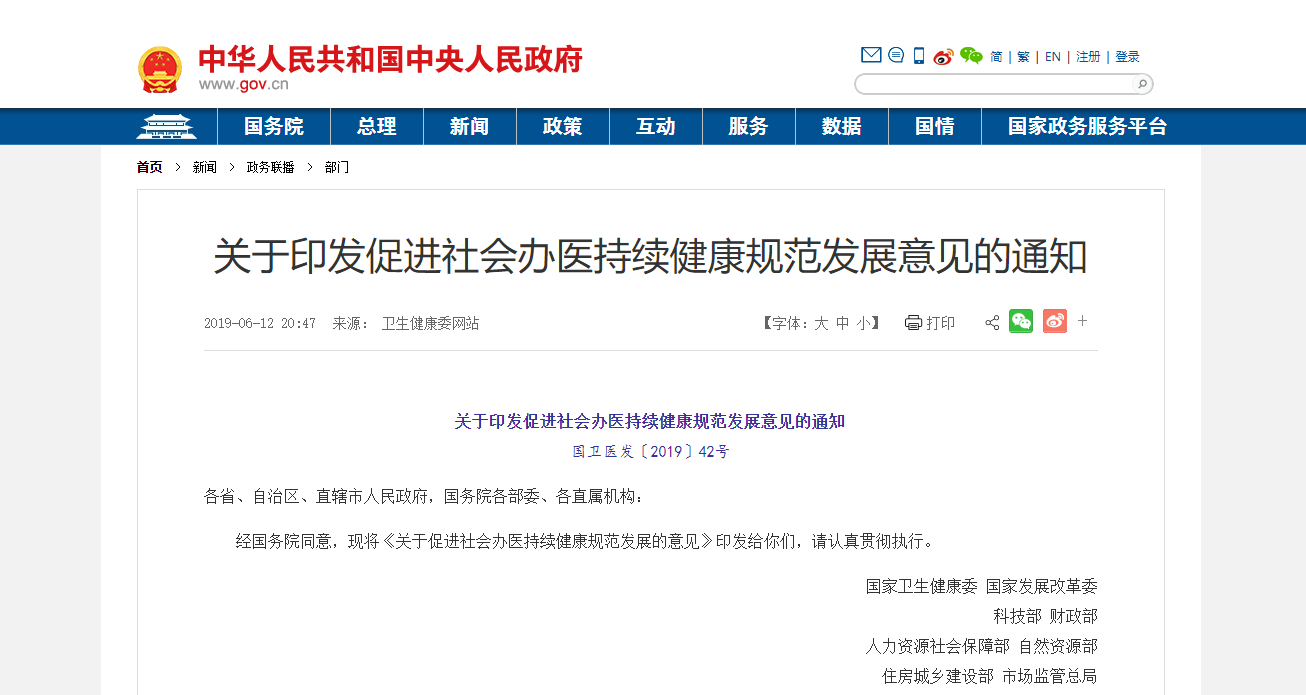 關(guān)于印發(fā)促進(jìn)社會(huì)辦醫(yī)持續(xù)健康規(guī)范發(fā)展意見的通知
