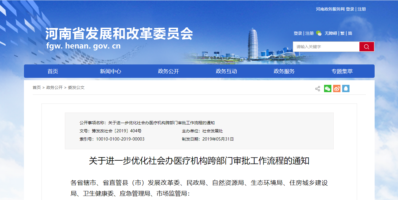 關于進一步優化社會辦醫療機構跨部門審批工作流程的通知