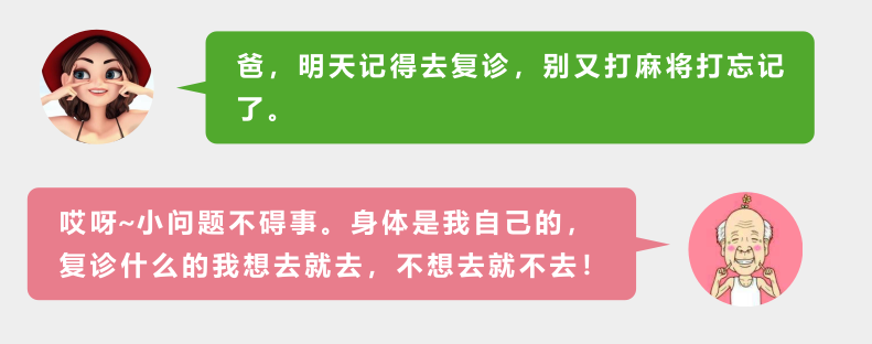 明明告知了要復(fù)診,患者卻有各種借口不來,“身體是我自己的”這是最具代表性的“逃避”借口。盡管這些借口一看上去就很可笑,但它們卻是實實在在的,阻隔在患者復(fù)診之路上的一座座大山。有些患者就算口頭上答應(yīng),可心里壓根沒當(dāng)回事,也很容易成為復(fù)診的“逃兵”。