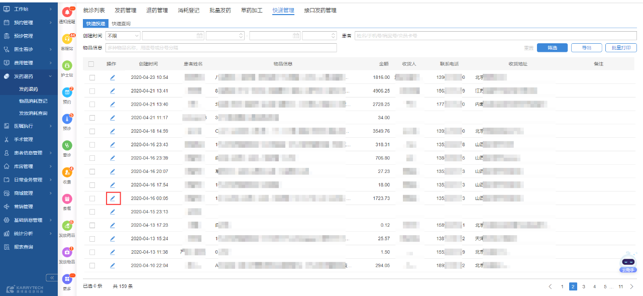 在【快遞管理】版塊中,診所可以批量高效處理訂單。