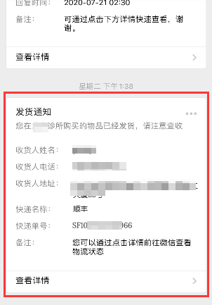 產(chǎn)品進(jìn)入快遞環(huán)節(jié)后,診所人員和顧客都能隨時(shí)查看到相應(yīng)的快遞信息。