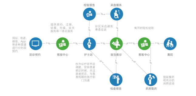 通過康博嘉研發(fā)的醫(yī)院信息系統(tǒng),可以將傳統(tǒng)的就診模式轉(zhuǎn)變?yōu)楦咝У南仍\療后付費(fèi)的就診流程,即通過網(wǎng)站、電話、微信、App等多種渠道進(jìn)行分時段預(yù)約,采取實(shí)時信息通知、提前擺藥、條碼應(yīng)用、互聯(lián)網(wǎng)支付等手段,使診療流程更順暢、更合理。