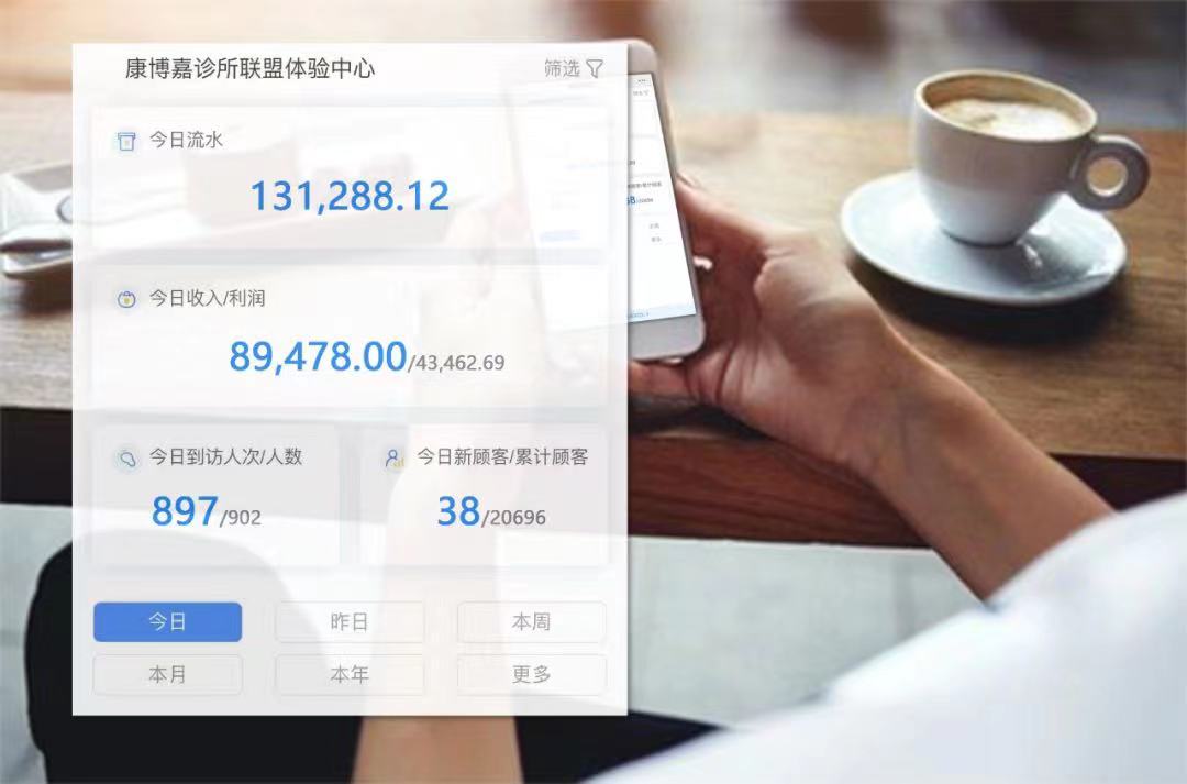 診所管理者可在移動端利用自己日常的碎片化時間,快速掌握診所各項核心數據,對診所的經營情況做到心中有數。