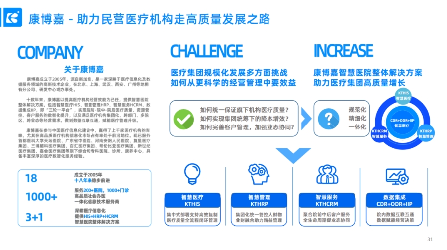 而在C03展位上,康博嘉攜旗下智慧醫療HIS、智慧管理HRP、智慧服務HCRM等產品集中亮相,作為社會辦醫信息化業內的前沿企業,展示了豐富的智慧醫院解決方案。
