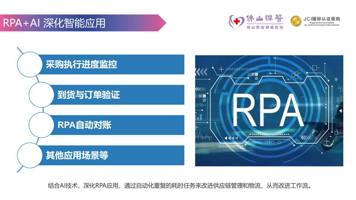 未來,禪醫(yī)將持續(xù)與康博嘉深度合作,不僅在科室二級庫管理、設(shè)備效益分析、RPA+AI、協(xié)同管理等智慧采購領(lǐng)域深化應(yīng)用,更將不斷推進業(yè)財融合,用數(shù)據(jù)賦能管理決策,達到智慧管理評級更高級別,用信息技術(shù),提升管理效能,實現(xiàn)高質(zhì)量發(fā)展。