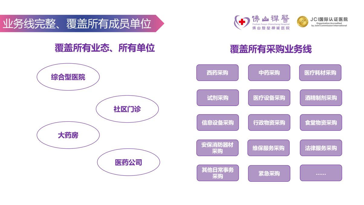 通過HRP平臺實現(xiàn)的智慧采購,成功地覆蓋綜合型醫(yī)院、社區(qū)門診、藥房、醫(yī)藥公司等多個業(yè)態(tài),覆蓋所有采購業(yè)務(wù)線,包括中西藥、醫(yī)療耗材、試劑、設(shè)備、后勤物資,保證照顧供應(yīng)網(wǎng)絡(luò)的每一條鏈路。