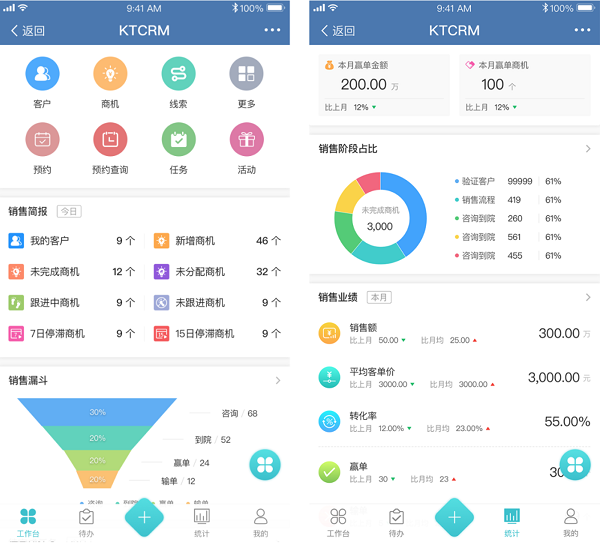移動辦公:員工可以通過微信隨時隨地關注客戶動態,第一時間提供回應,根據需求標記待辦事項,防止遺忘;銷售也可以在移動端對客戶數據進行統計分析,發現商機,收集有效線索,避免客戶流失。市場可在移動端推送營銷活動,吸引更多客戶就診。