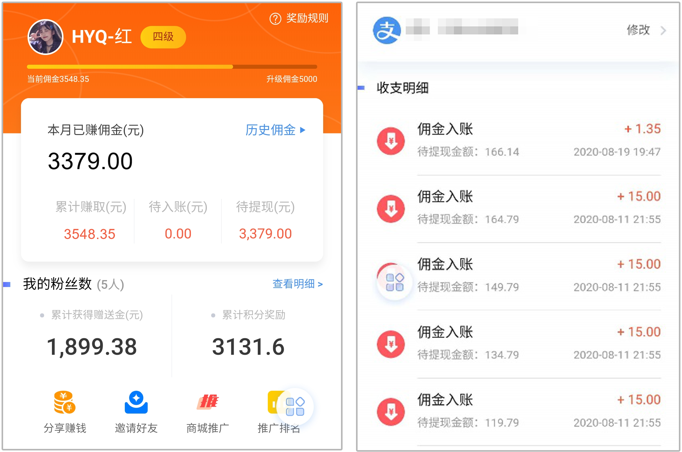 種子顧客還可以隨時查看關乎自己傭金收入的各項信息,包括賬戶總額、收支明細、提現記錄,以及晉級條件。隨時查看,隨時驗收。