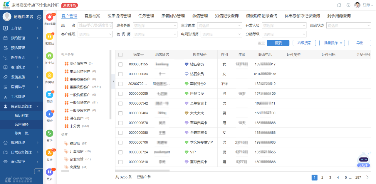 康博嘉云診所醫療軟件通過運用客戶分類體系、客戶標簽技術、RFM模型,幫助診所實現差異化的精準營銷。