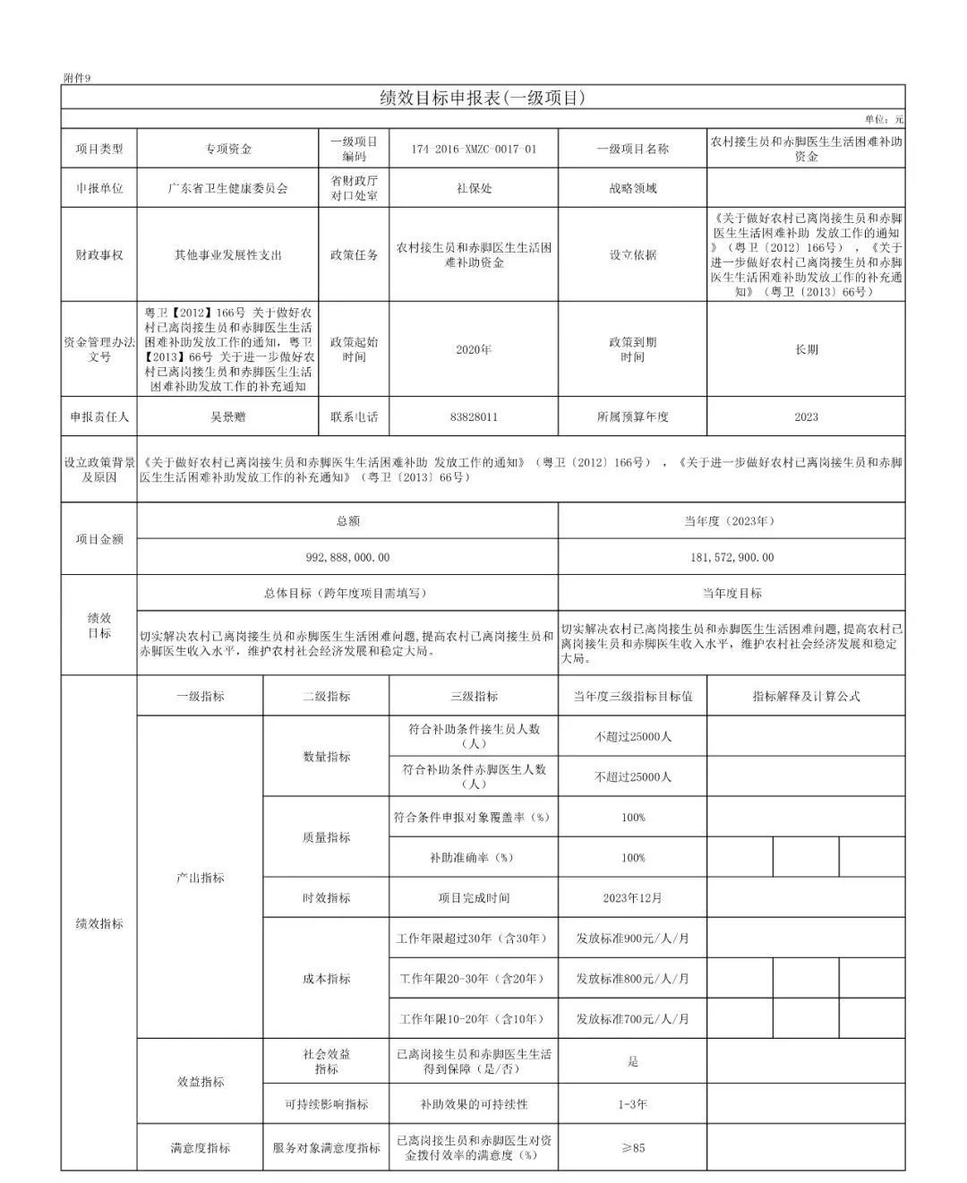 2022年11月,廣東省明確2023年的部分預算資金,其中包括1.82醫院給上述接生員和赤腳醫生的補助獎金。且廣東省共計設置9.93億元用于老年村醫的養老。