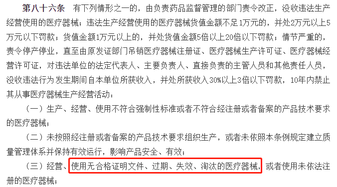 這個(gè)提醒診所老板們,一定要關(guān)注《醫(yī)療器械監(jiān)督管理?xiàng)l例》,其中就表明了如果使用無合格證明文件、過期、失效、淘汰的醫(yī)療器械,不僅要被沒收,而且還會(huì)根據(jù)器械貨值,處以2萬元以上5萬元以下罰款。